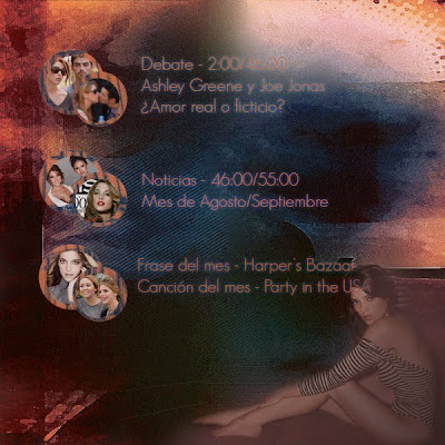 P.D.: Antes de escucharlo, os queríamos informar que la emisión la grabamos a finales de Septiembre así que los temas que tratamos no han sido influidos por noticias actuales, es decir, en aquel momento no había pruebas tan "reales" de la relación de AG y Joe Jonas pero a pesar de ello decidimos publicar el capítulo porque es una emisión de prueba y además pare recordar la opinión en general que desataron esas noticias.
